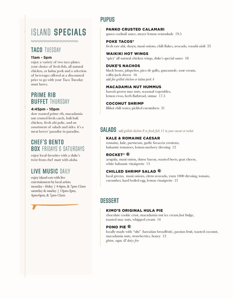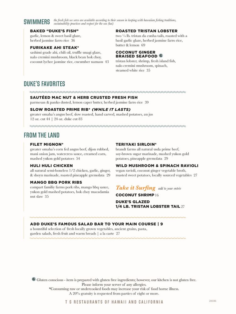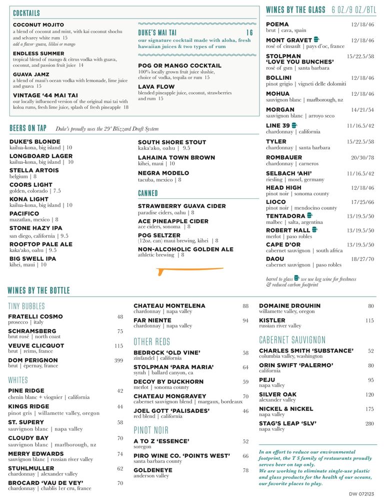 Duke's Waikiki Menu